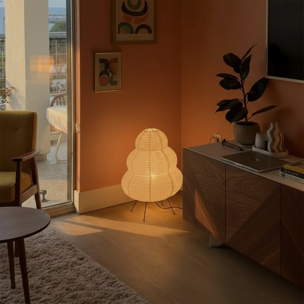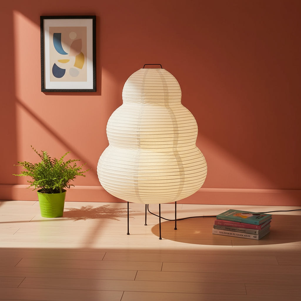 Een lamp die rust, licht en eenvoud samenbrengt, geïnspireerd op de Japanse kunst van minimalisme.