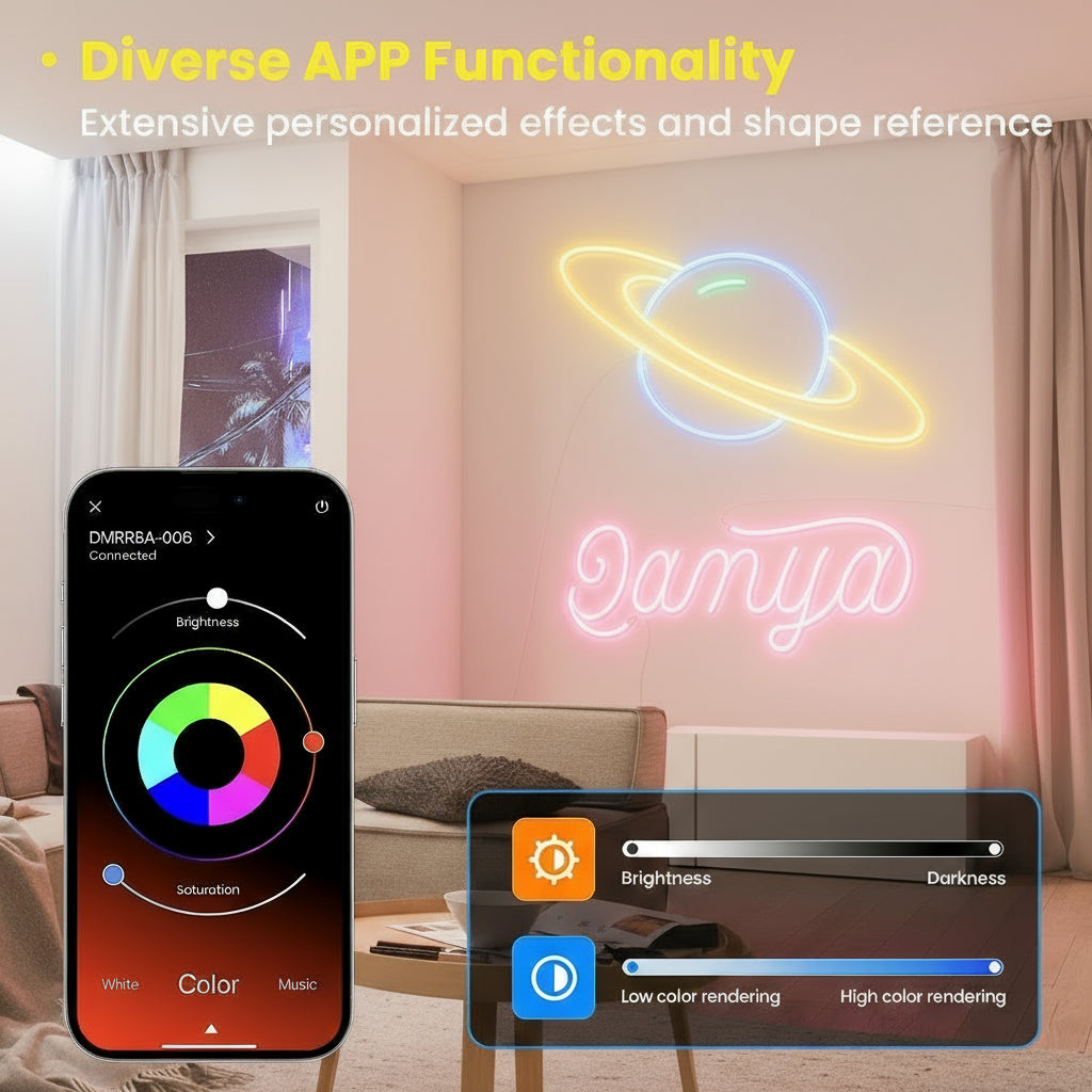 Breng kleur en sfeer in elke ruimte met deze flexibele RGB LED-strip. De neonverlichting is eenvoudig te bedienen via een handige app of afstandsbediening, waarmee je kleuren, helderheid en lichteffecten kunt aanpassen. Dankzij de muzieksynchronisatie reageert de verlichting op het ritme van je favoriete nummers: ideaal voor feestjes, filmavonden of ontspannen momenten thuis.